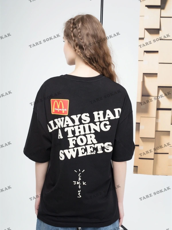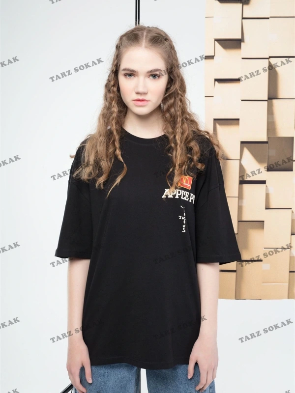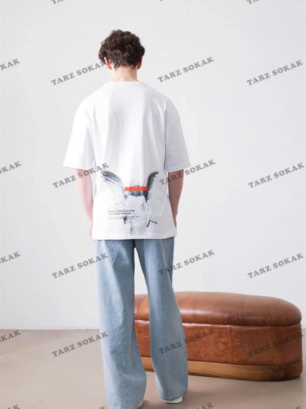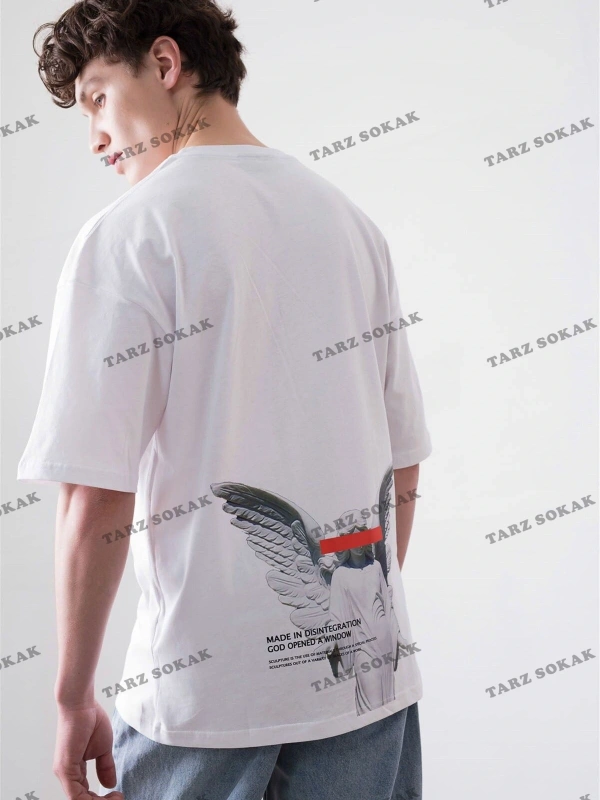 KOD Trend EMRG Erkek Büyük Beden Düşük Omuzlu Tişört Çizgi Film Karakteri ve Harf Baskılı