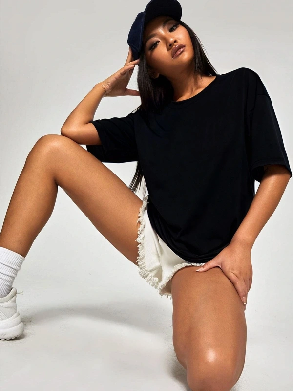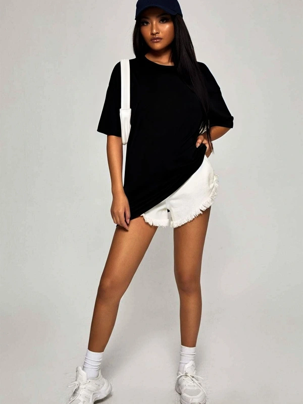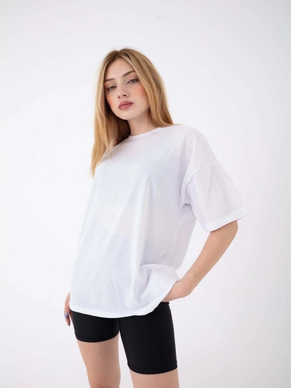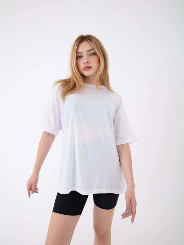 Kadın Oversize Kısa Kollu Bisiklet Yaka