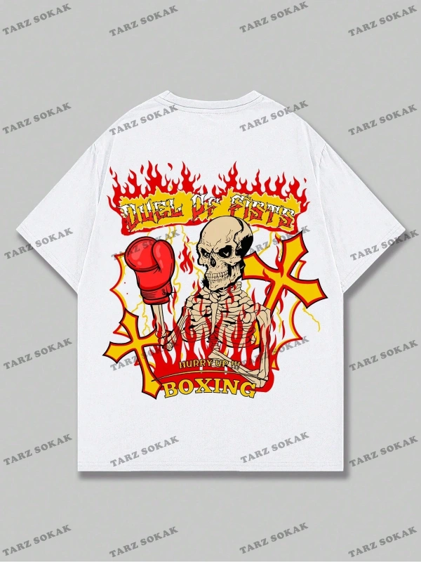 KOD Trend Street Life Erkek Kafatası ve Harf Grafikli Tişört