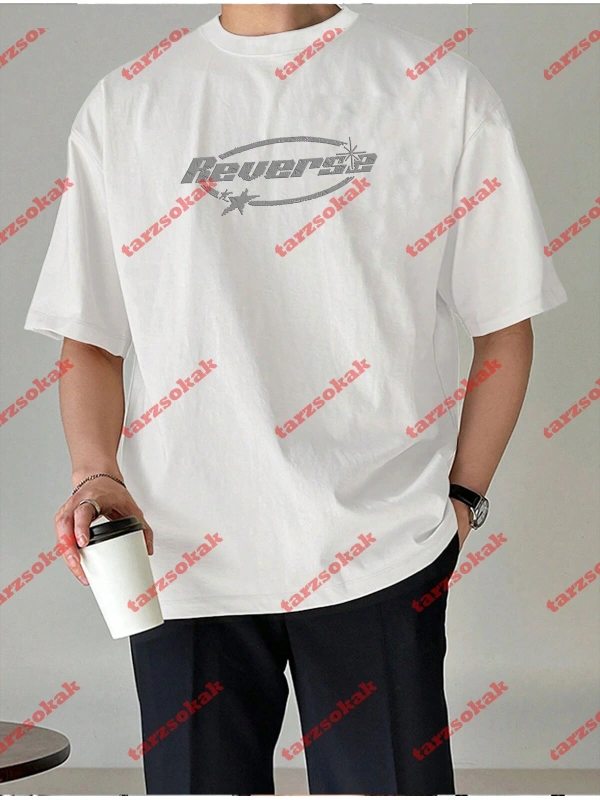 Erkek Yazılı Baskılı Kısa Kollu Tişört