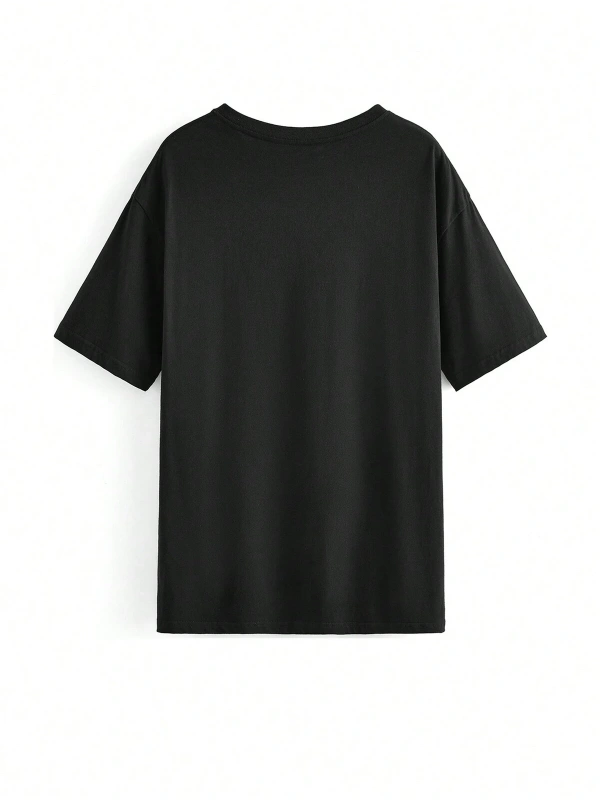 Figür ve Slogan Grafikli Düşük Omuzlu Tişört