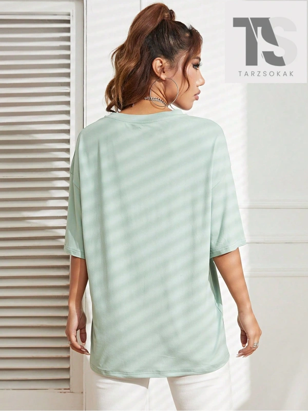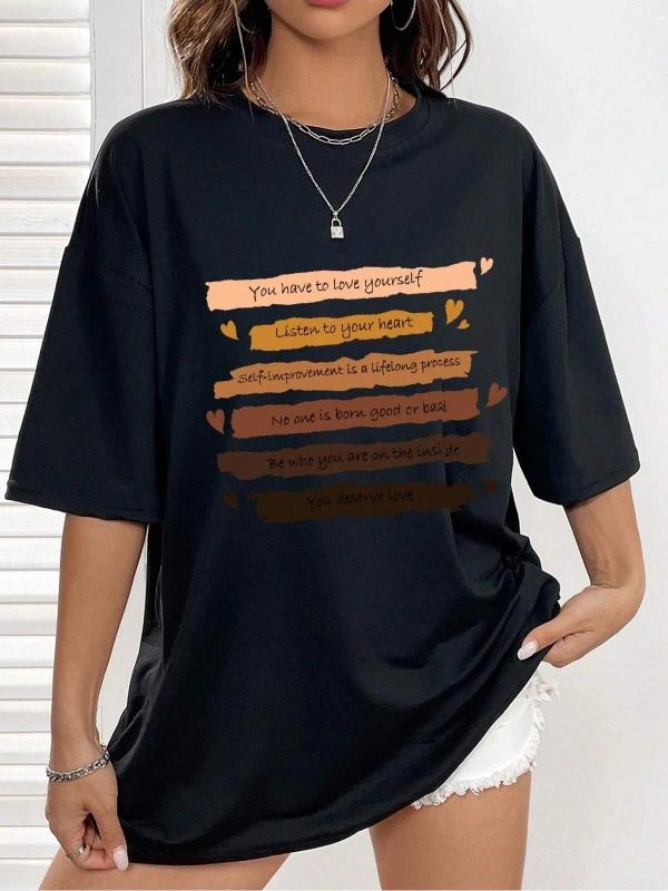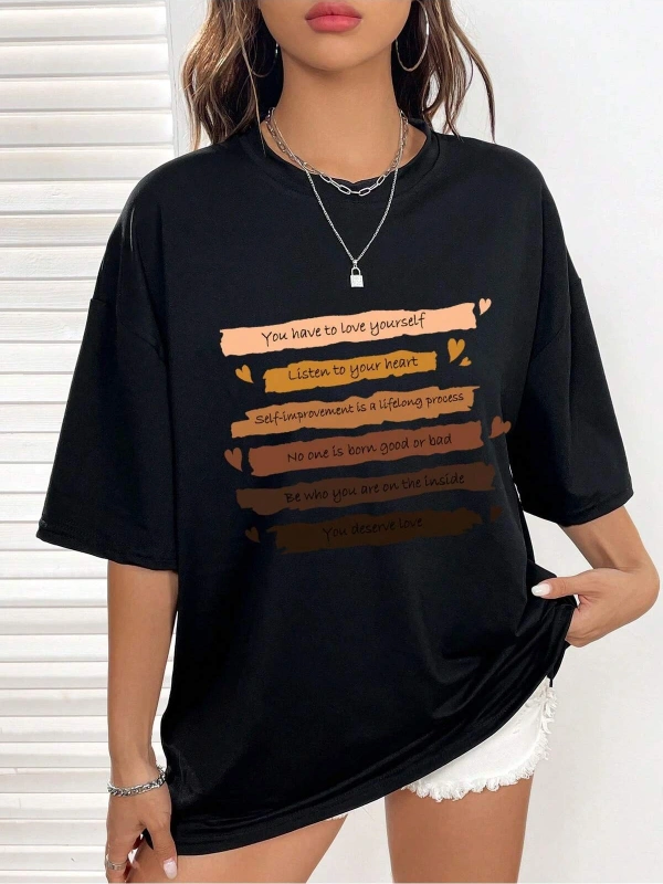 Slogan Grafikli Düşük Omuzlu Tişört