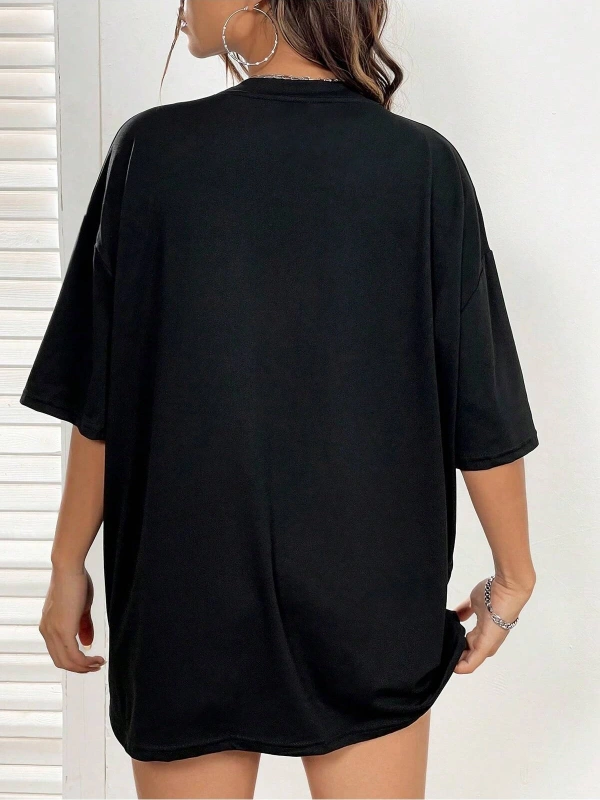 Sloganlı Yamalı Düşük Omuz Tişört
