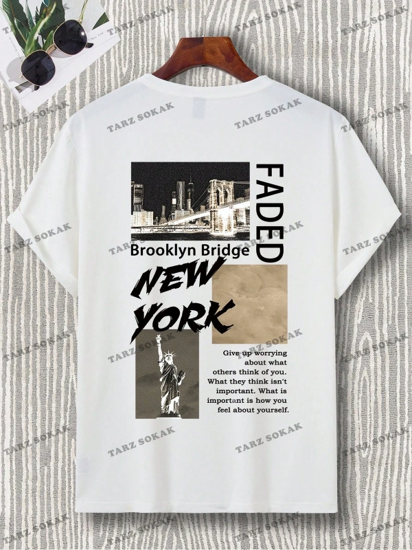 Erkek Slogan Baskılı Kısa Kollu Tişört