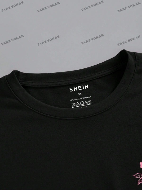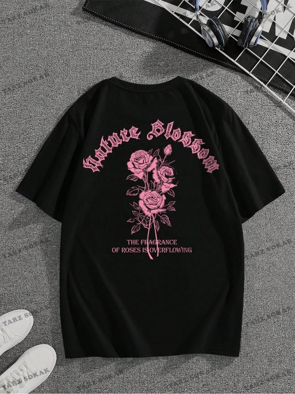KOD Trend Erkek Çiçek & Slogan Grafikli Tişört