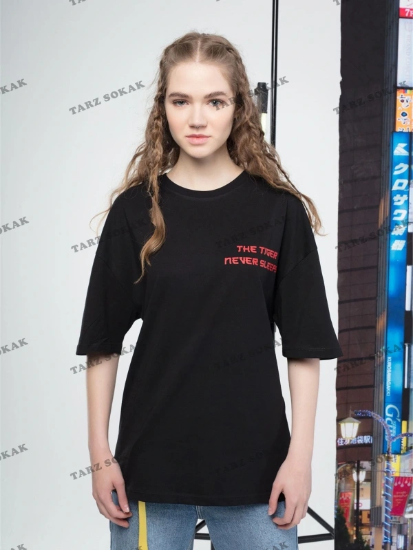 Kadın Oversize Dökümlü Tok Kumaş Tişört
