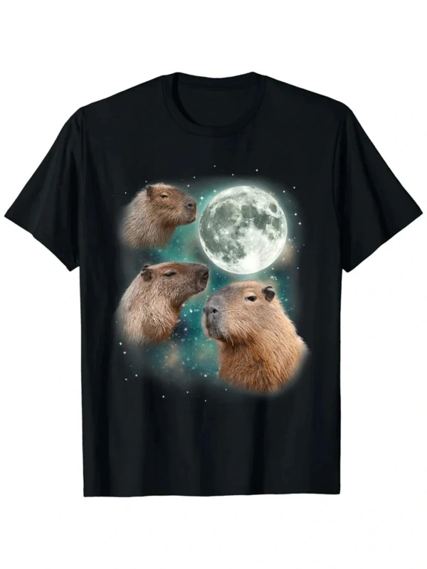 Siyah lar için baskılı Komik Kapibara TShirtRetro Desen Yaz Yuvarla