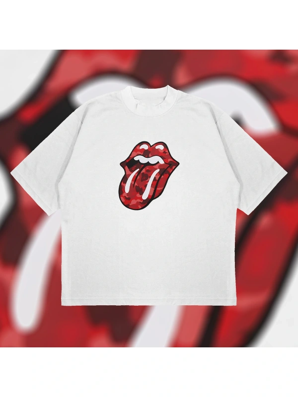 A Bathing Ape X Rolling Stones Red Boxy Fit Oversize Unisex Tshirt – Baskılı Tişör