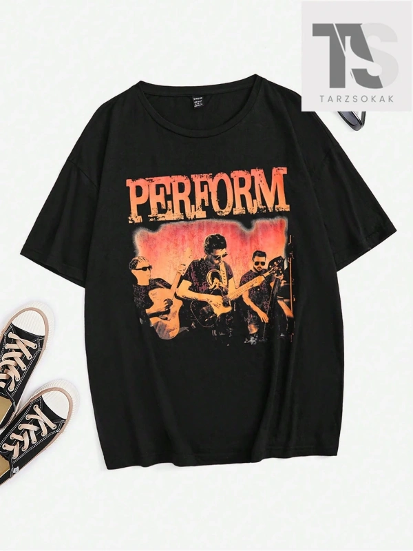 Coolane Harfli Grafik Düşük Omuzlu Tişört