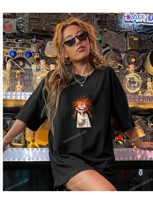 Oversize Siyah Tiger Baskılı