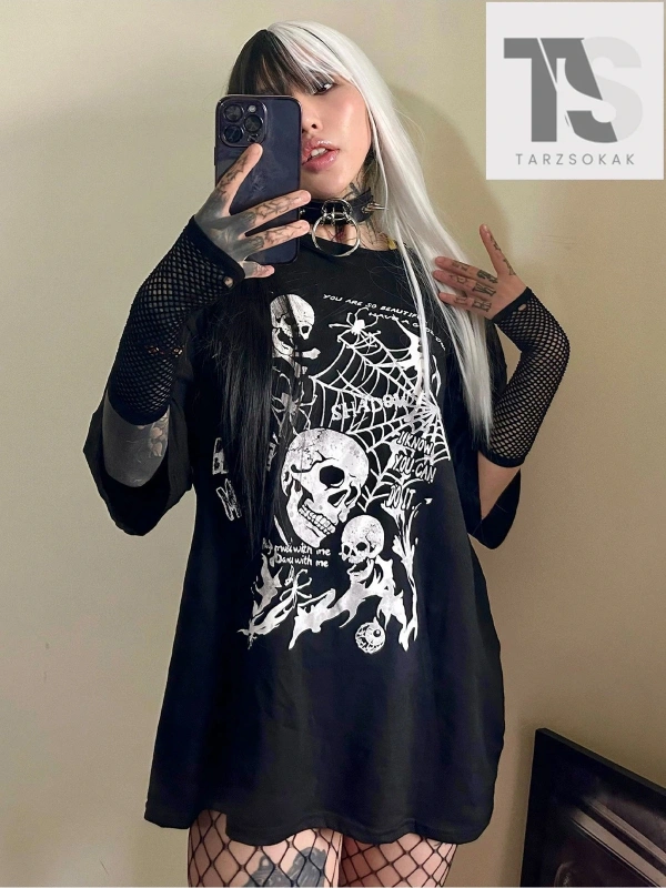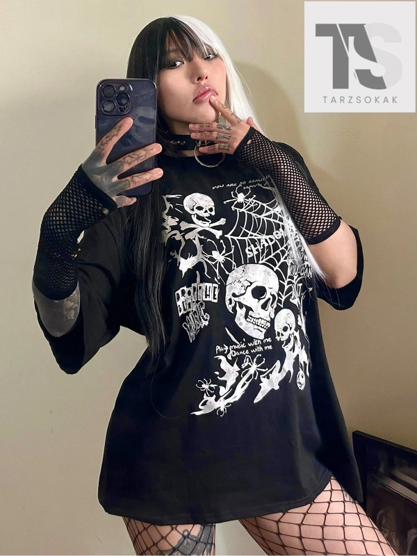 Goth Kadın Casual Kedi Baskılı T-Shirt