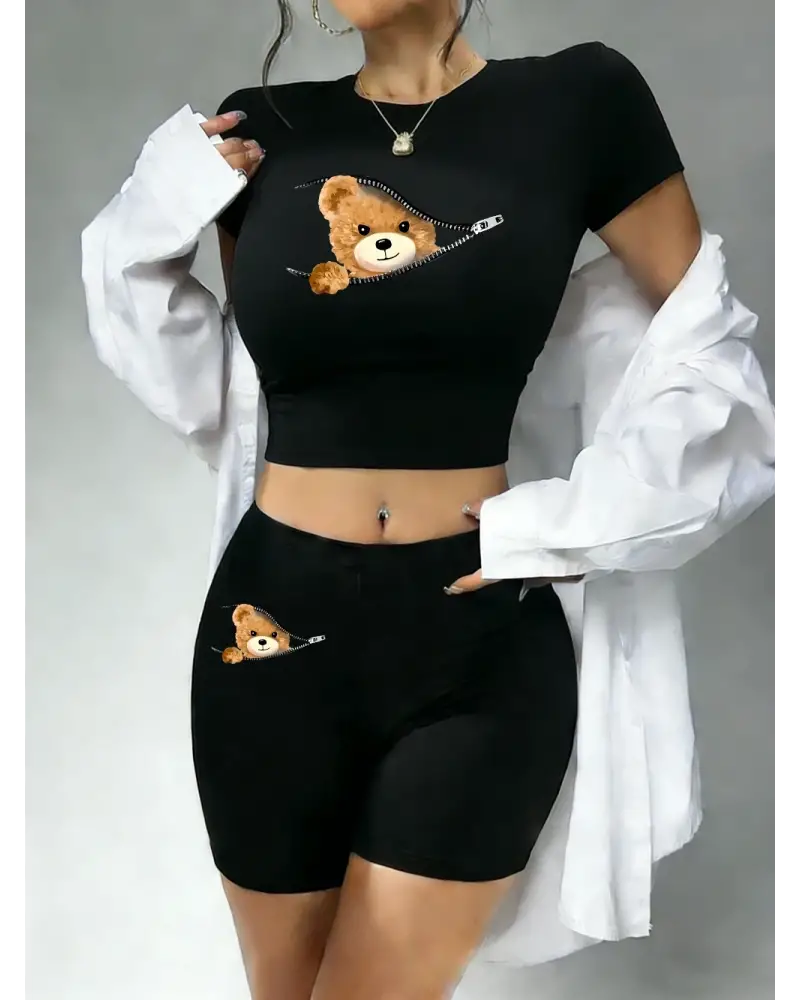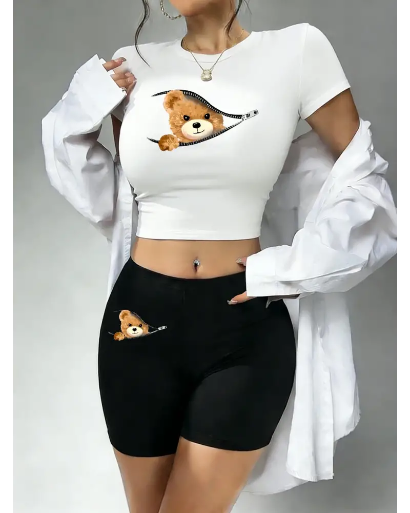 Trend Fermuarlı Ayı Desenli Baskılı Babby TeeTişört ve Şort Kadın İki Parçalı Set Üstler Pantolon kaliteli malzeme ve konforlu kullanım sunan bir üründür. Günlük kullanım için ideal olup uygun fiyat ve hızlı kargo avantajıyla sunulmaktadır.