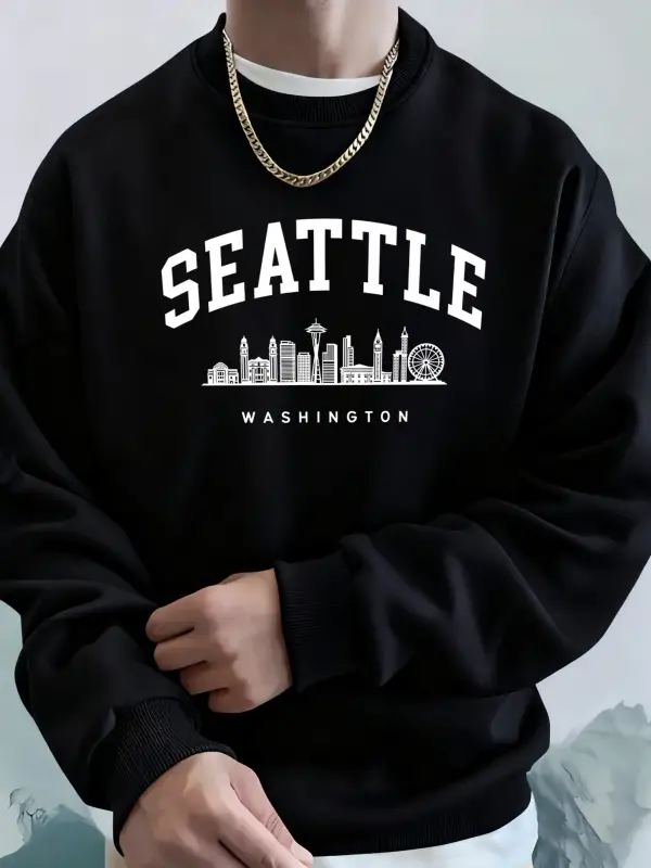 Seattle Washington Mektup Yaratıcı Baskılı Moda Spor Giyim Erkek Cep Sıcak Üst Polar Tüm Maç