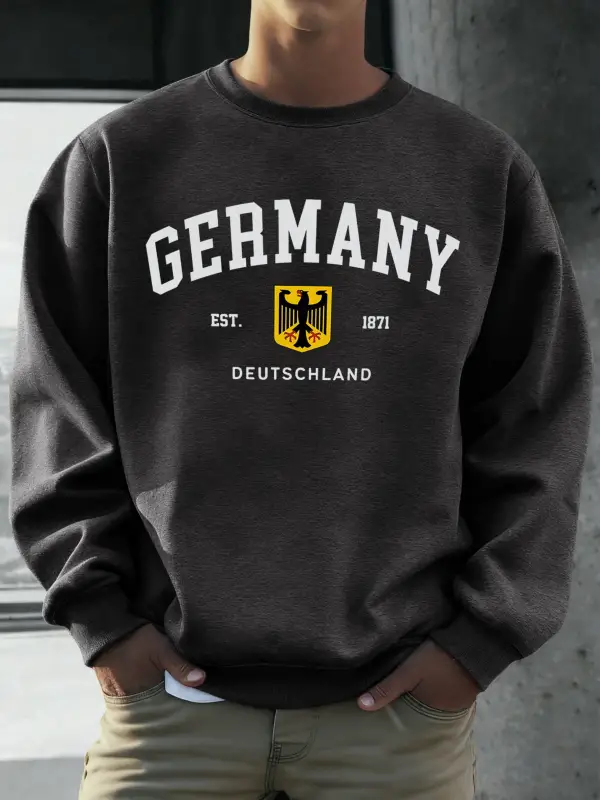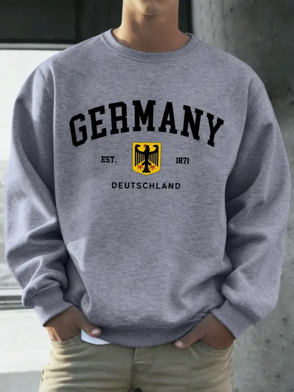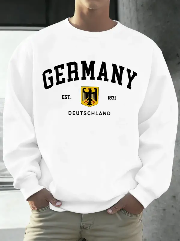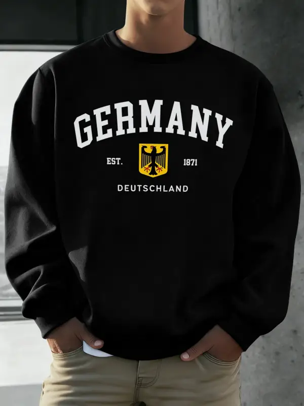 Almanya Deutschland Ulusal Amblem Baskı Erkekler Kazak Moda Polar Kazak Retro Rahat Uzun Koll
