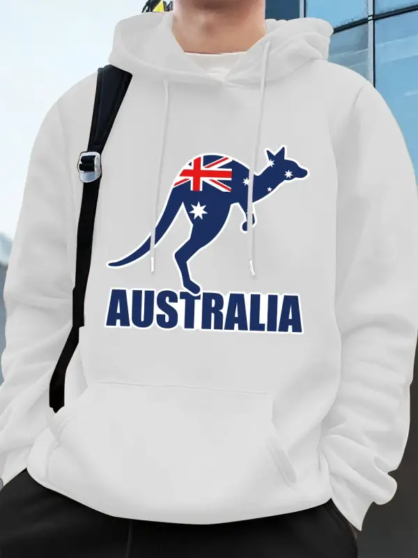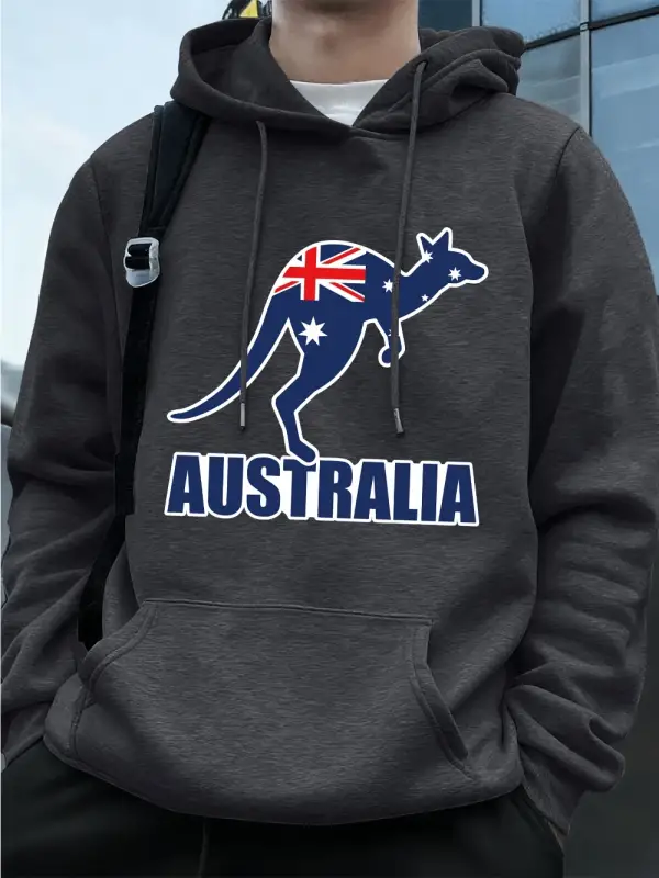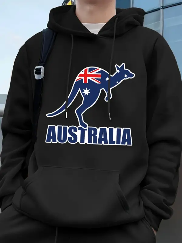 Avustralya Kanguru Baskı Erkek Kazak Kış Polar Sıcak Kapüşonlular Temelleri Büyük Boy Cep Str