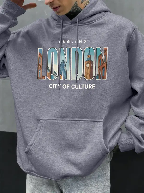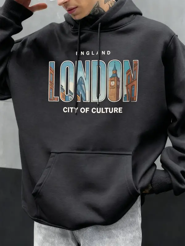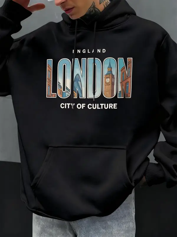 Londra Şehir Baskıları Sonbahar Erkekler Hoody Cep Kapüşonlu Üst Hip Hop Moda Giyim Kişilik R