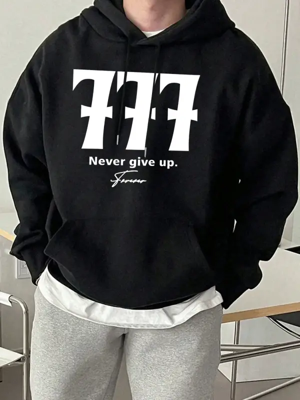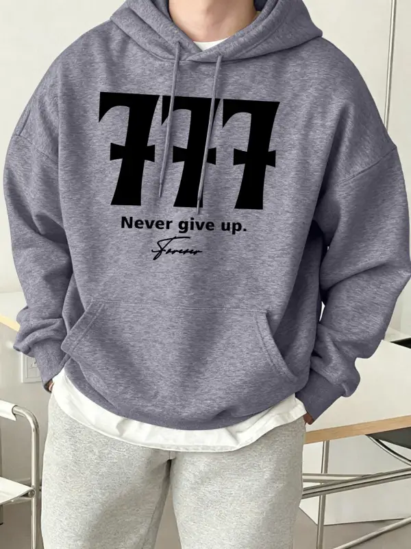 Never Give Up Number 777 Print Basics Sokak Kapüşonluları Erkekler Polar Yumuşak Sokak Giyimi
