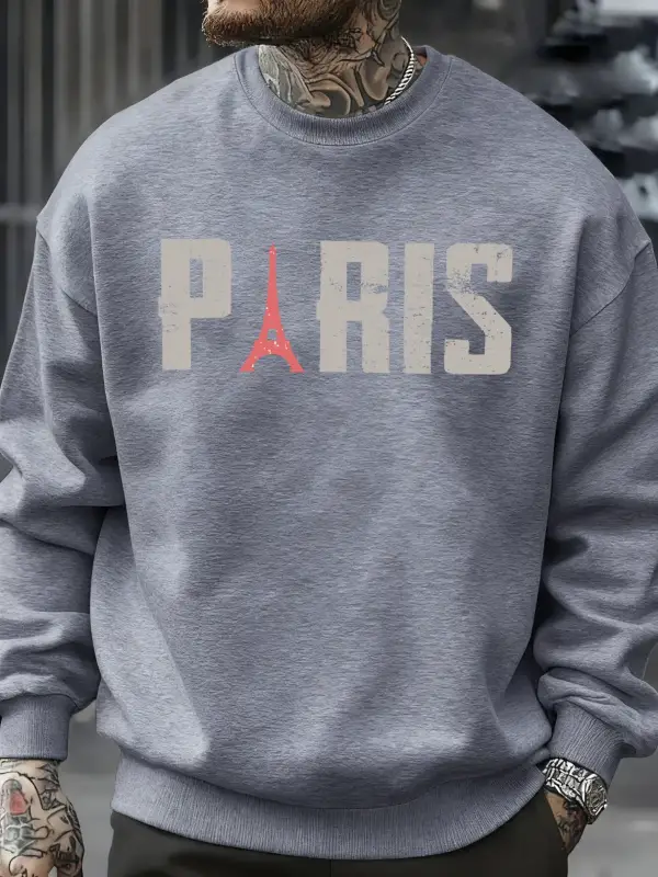 Ünlü Paris Kulesi Desen Kazak Erkekler O-Boyun Giysileri Sonbahar Polar Retro Kazak Gevşek Un