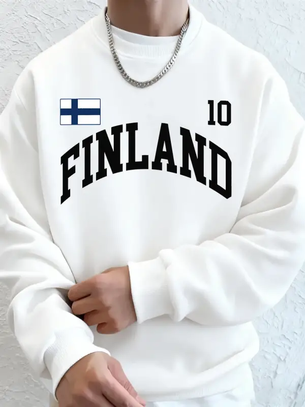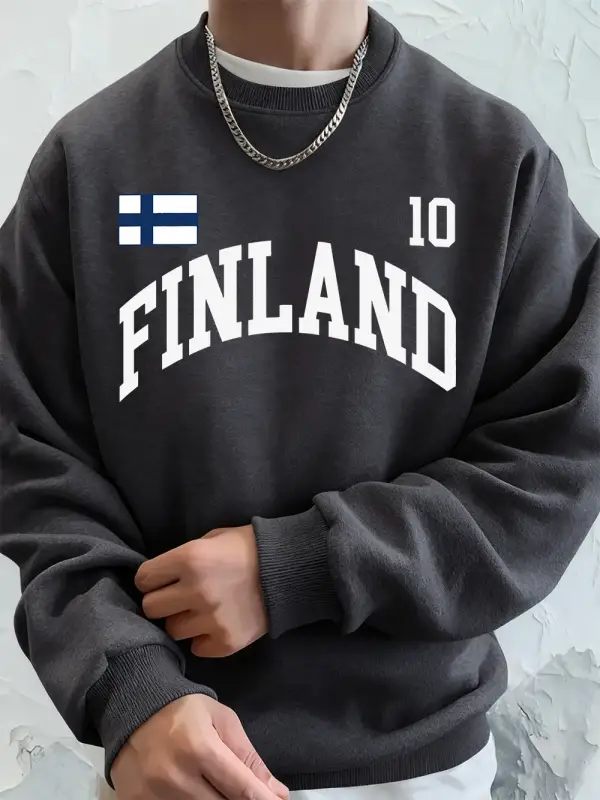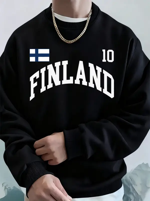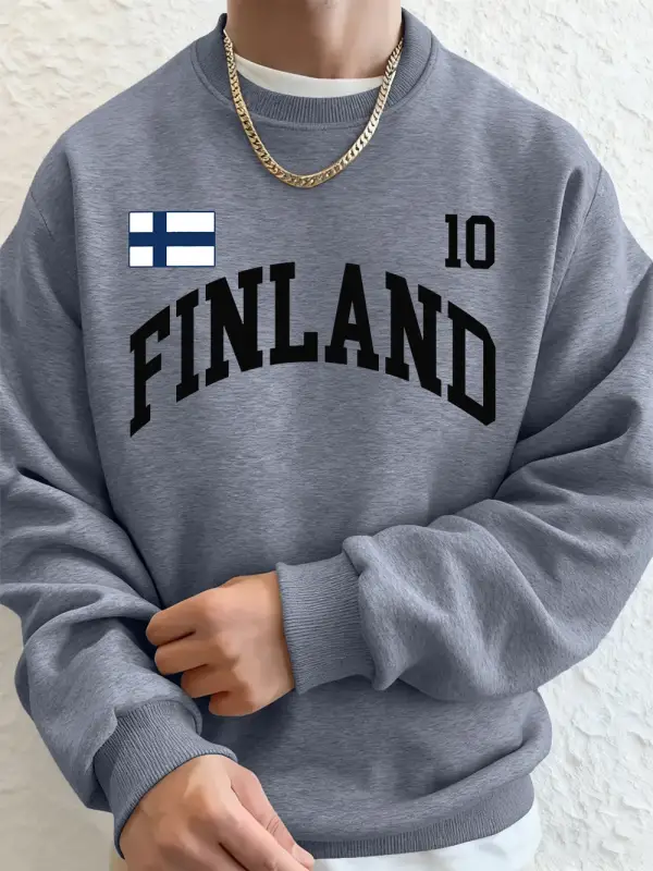 Finlandiya Bayrağı Baskılar Erkek Tişörtü Sonbahar Polar Sıcak Koşu Kapüşonlular Rahat Gevşek