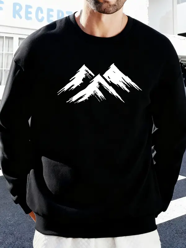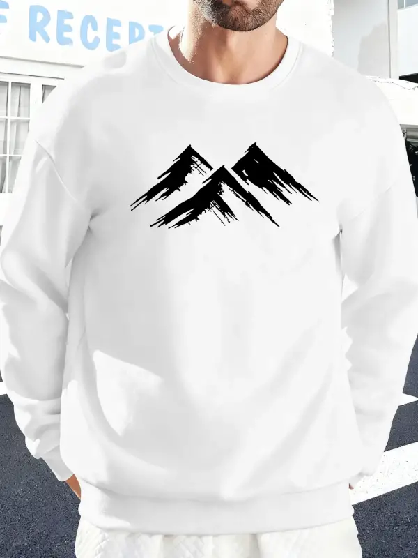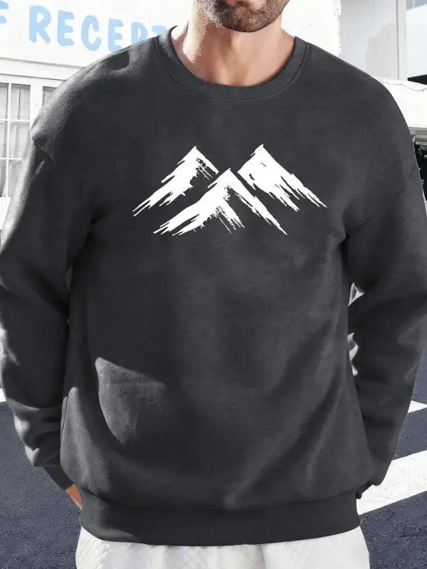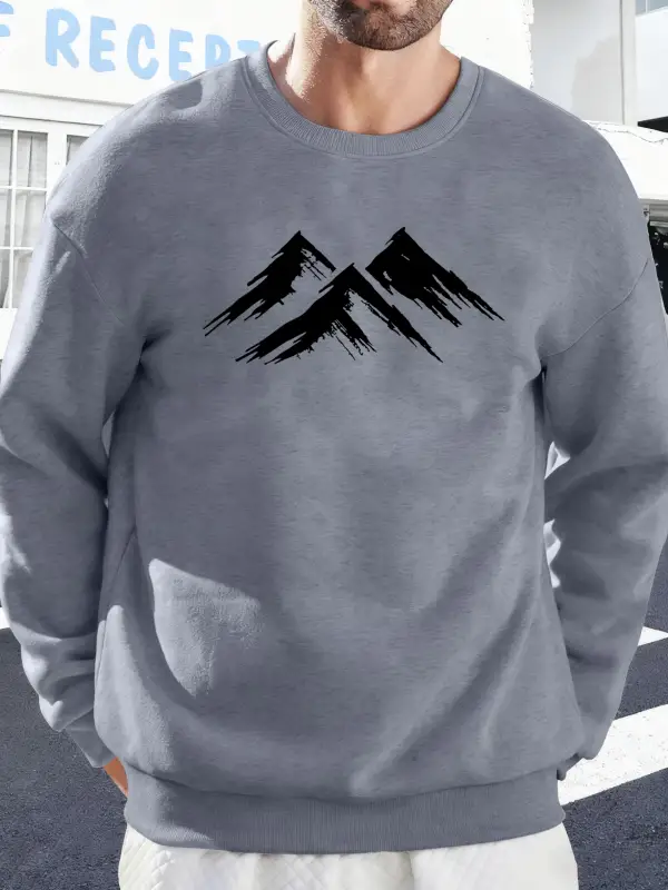 Hill Sketch Baskılı Sonbahar Polar Sokak Giyim Çiftler İçin Yuvarlak Yaka Yumuşak Kazak Her Ş