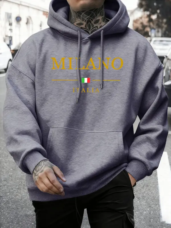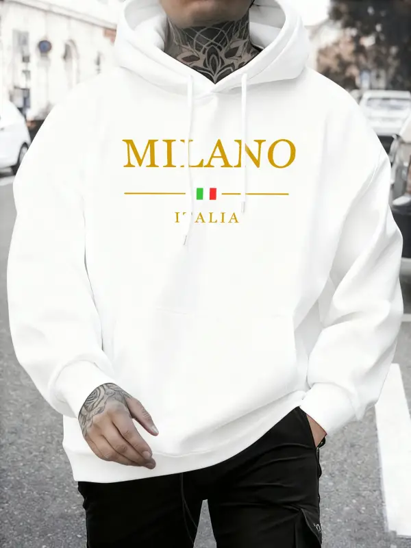 Milano Italia Baskı Sonbahar Modası Kapüşonlu Üst Erkek Temel Giyim Günlük Tişörtler Rahat Po