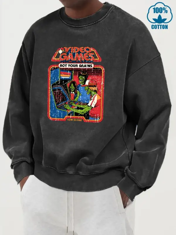 Zekinize Özel Video Oyunları Baskılı Erkek Yıkanmış Pamuklu Kapüşonlu Üst Moda Yumuşak Kazak