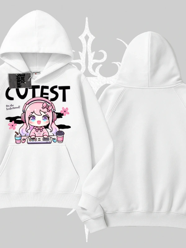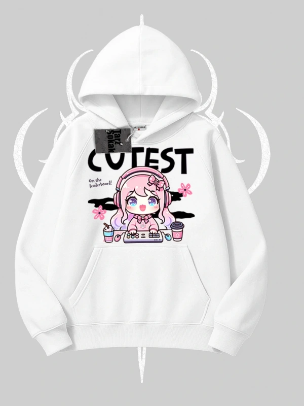 Kapşonlu Sweatshirt Cute Anime Gamer Girl Baskılı