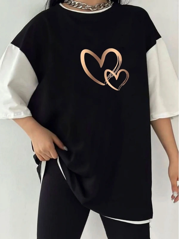 Çift Renk KALPLER 2 Baskılı Unisex Tshirt