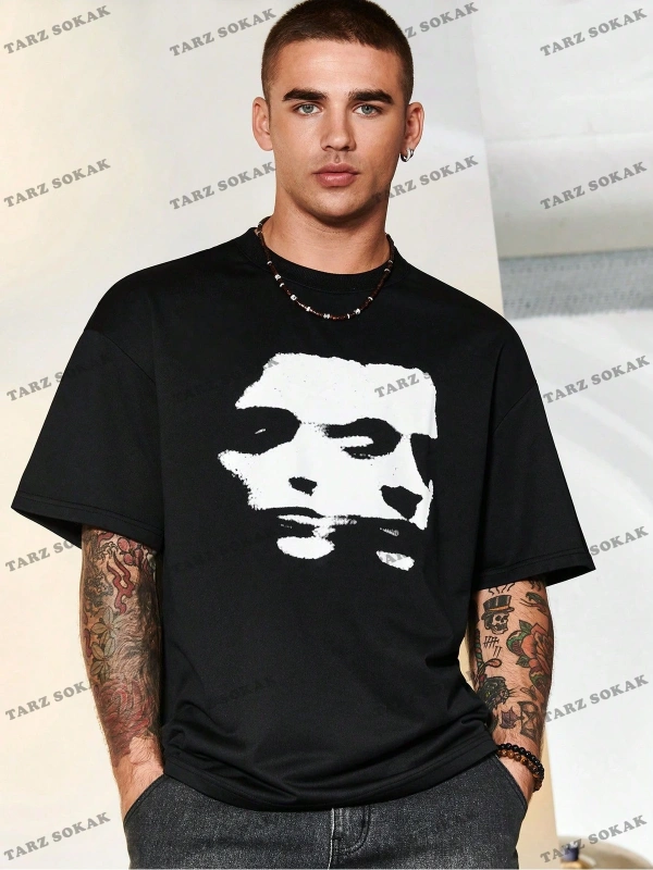 KOD Trend EMRG Loose Fit Erkek Grafik Grafik Düşük Omuz Tişört