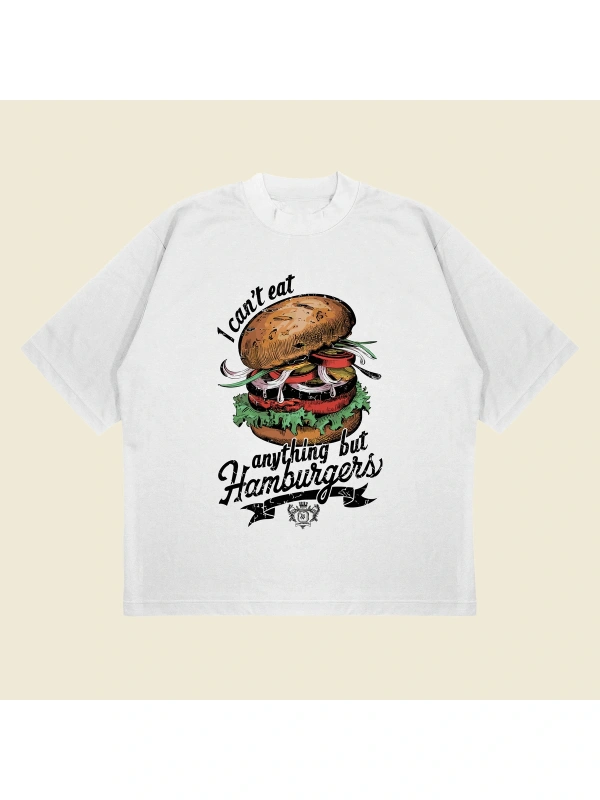 Hamburger Baskılı Oversize Unisex Pamuklu Nefes Alan Kalın Kumaşlı