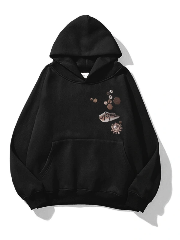 Unisex Oversize Kapüşonlu Kanguru Cepli Goodzila Baskılı Siyah