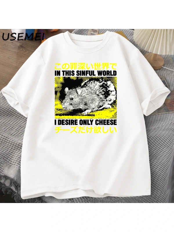 Ben arzu sadece peynir T-shirt erkekler komik pamuk japon sıçan Grpahic Tees Casual pamuk kıs 3089