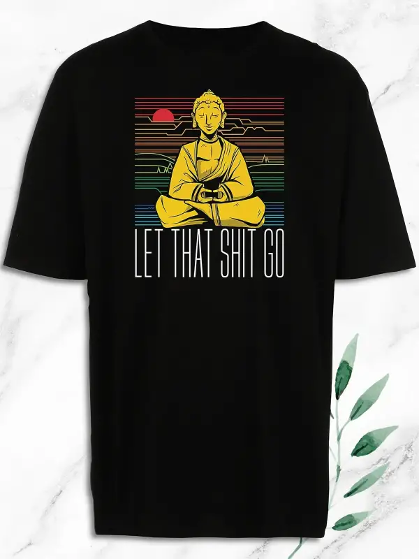 Oversize Buda Heykel Baskılı Siyah Tişört