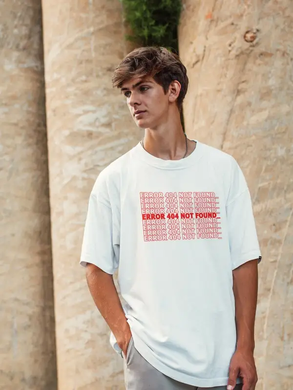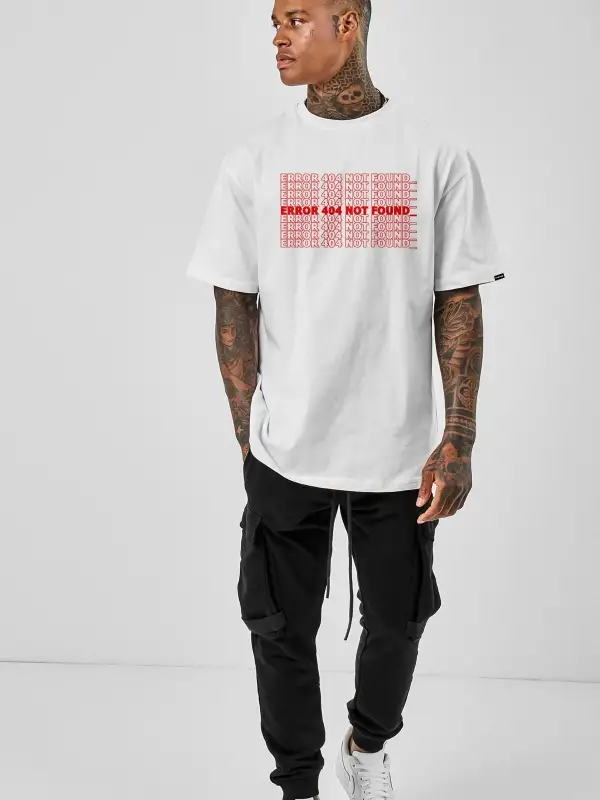 Oversize Error Baskılı Beyaz Tshirt NRAGE66