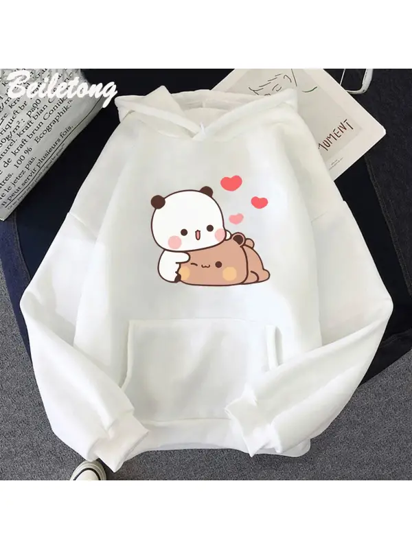 Beyaz Sevimli Panda ayı karikatür HoodieBubu Dudu kore tarzı lar 90s