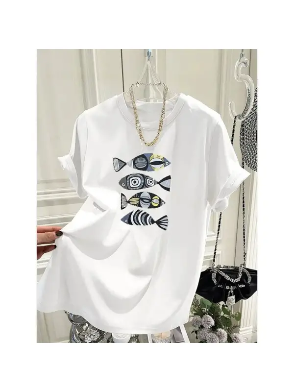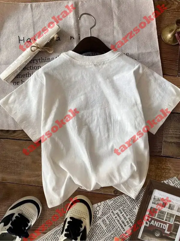 Beyaz Karikatür Hayvan Baskı Yaz Gevşek O-Boyun Tees Tüm