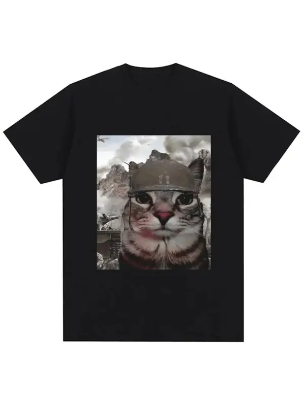 Siyah Bin Yard Bakış Kedi Komik Meme Mizah Tarzı Vintage li T Kad