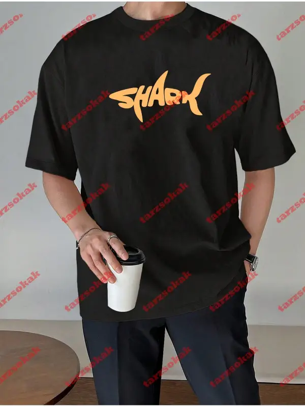 Unisex Shark Tasarım Tshirt Kısa kollu bisiklet yaka t-shirt