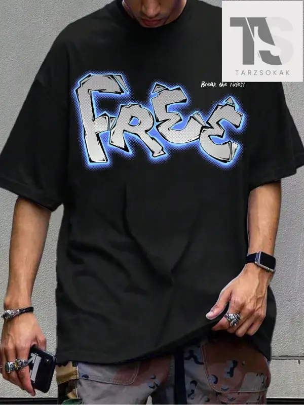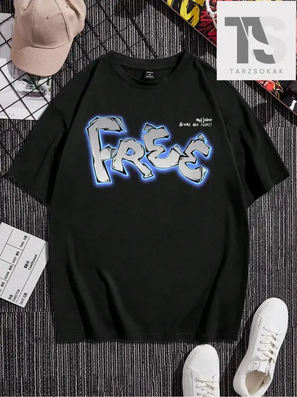 Street Life Erkek Karakter ve Slogan Baskılı T-shirt