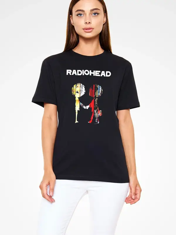 Erkek Kafatası El ve Harf Baskılı Tişört