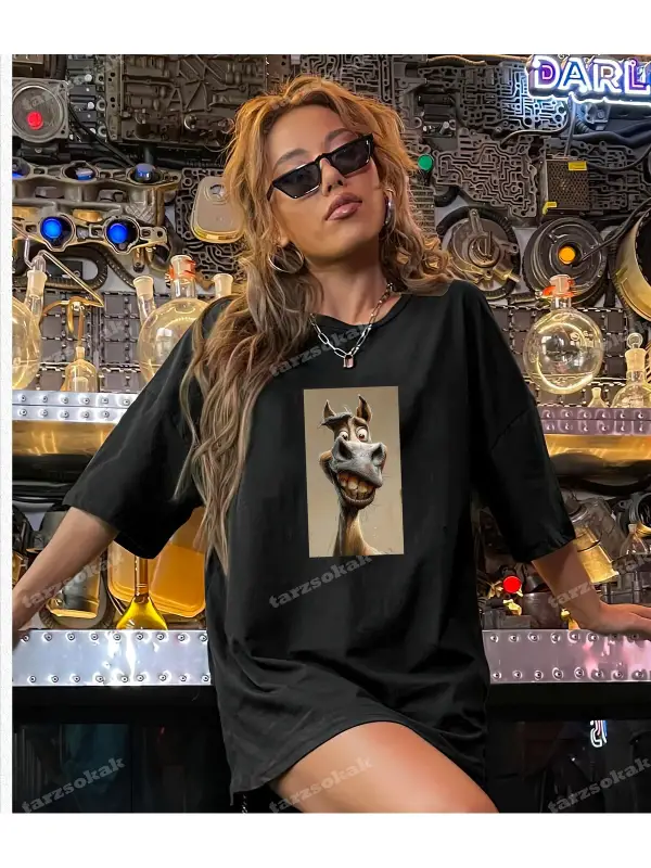 Sloganlı Grafik Düşük Omuz Oversize Tişört
