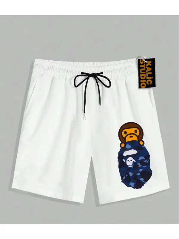 UNİSEX Bay Bape Desenli Beyaz Yazlık ŞORT