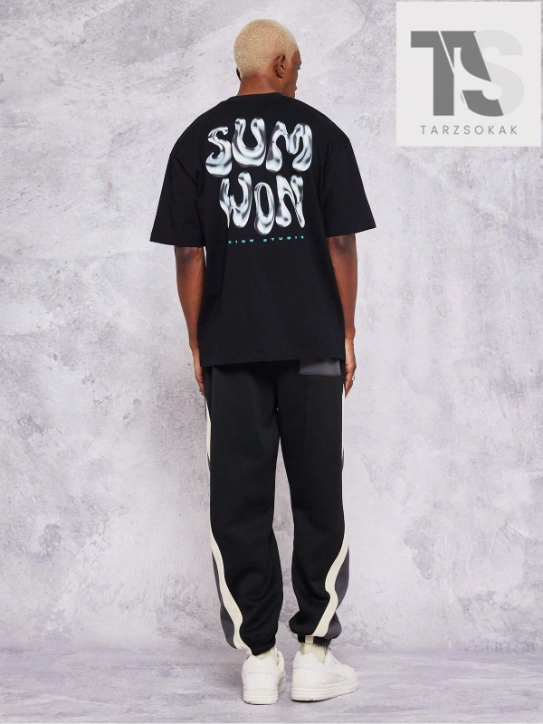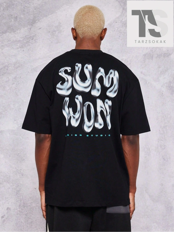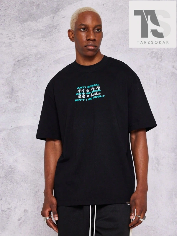 Grunge Punk Erkek Karakter ve Yazı Baskılı T-shirt