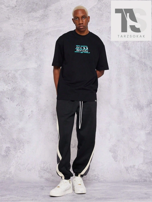 Unisex BAY Damla Omuz Yazılı Nakışlı Üst KOD-1352