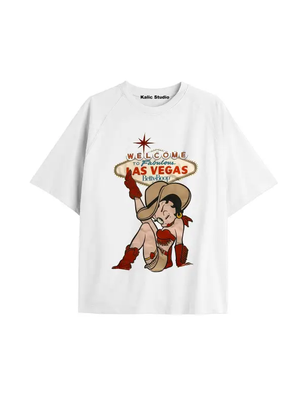 Betty boop las vegas oversize t-shirt beyaz