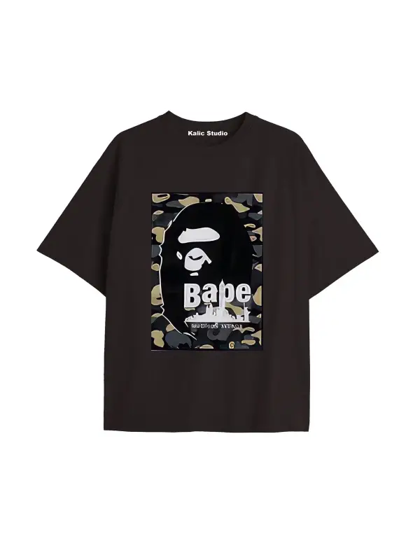 UNİSEX Bay Bape Desenli Siyah Yazlık T-shirt