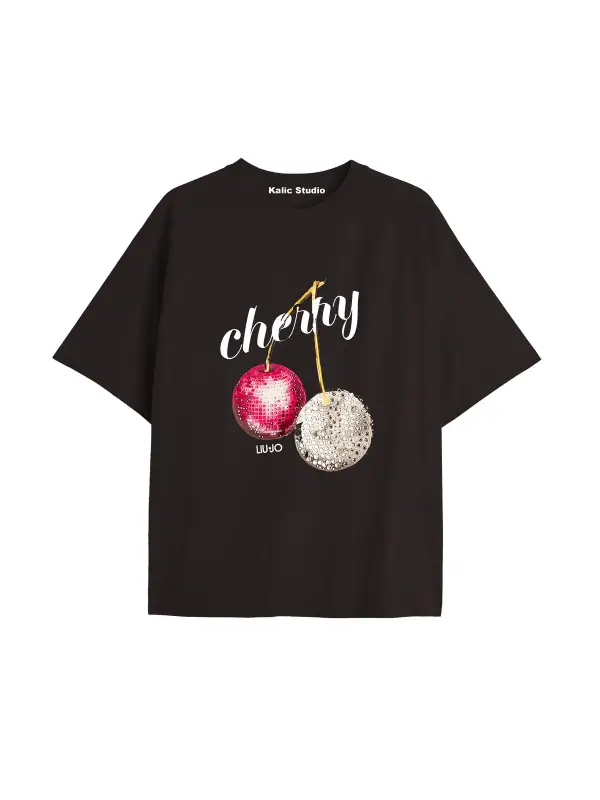 Y2k vintage Cherry Baskılı Sİyah T-shirt KOD 73