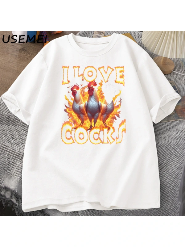 Ben aşk Cocks Roosters komik Meme T Shirt erkekler kadınlar komik grafik T Shrts çiftçi tavuk 2908