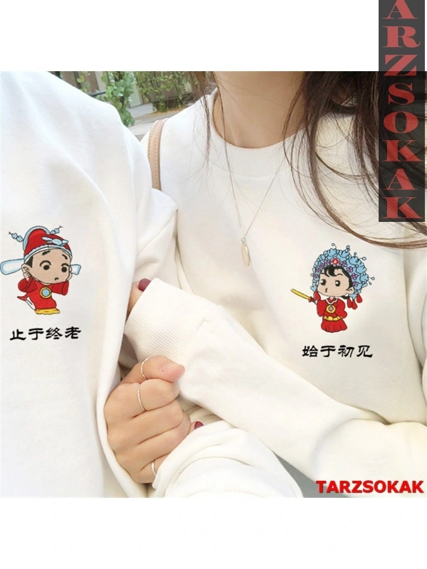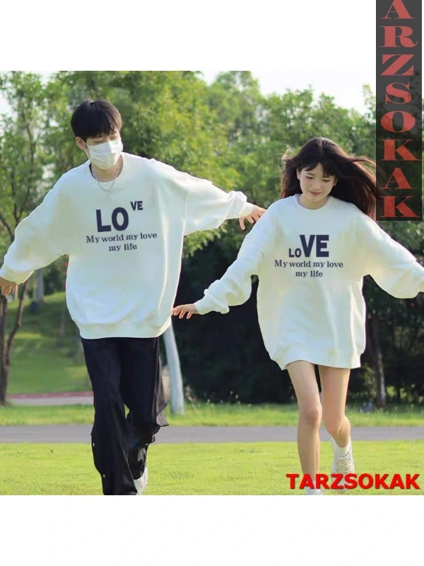 Renkli Biskilet Yaka Sweatshirt Çift Sevgili Kombinleri Couple Clothing