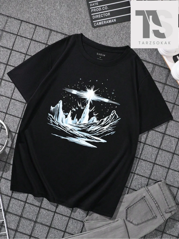Erkek Desen Baskılı Kısa Kollu Tişört